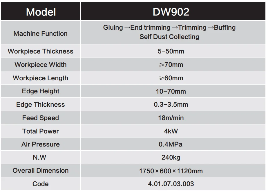 ฟังก์ชั่น : การติดกาว การตัดปลาย การเล็ม การขัดเงา การเก็บฝุ่นในตัว