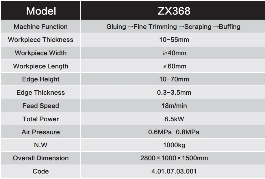 ฟังก์ชั่น : การติดกาว การตัดปลาย การเล็ม การขัดเงา การเก็บฝุ่นในตัว