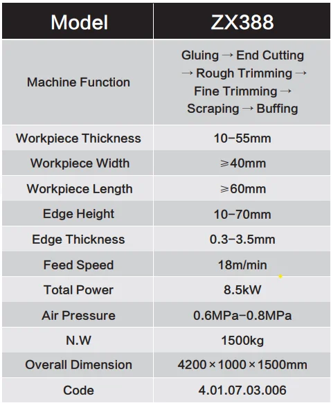 ฟังก์ชั่น : การติดกาว การตัดปลาย การเล็ม การขัดเงา การเก็บฝุ่นในตัว
