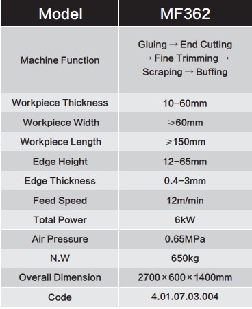 ฟังก์ชั่น : การติดกาว การตัดปลาย การเล็ม การขัดเงา การเก็บฝุ่นในตัว